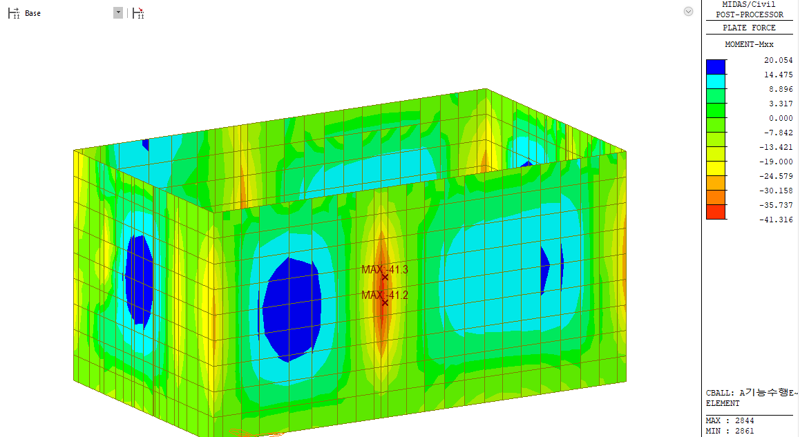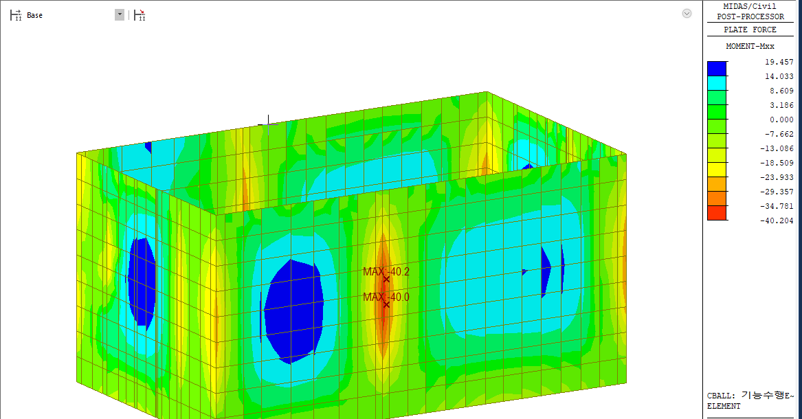 전체 모델링 중에 외벽에서만 2%대의 차이를 보였고 나머지는 1% 미만의 차이가 났다. 단면력의 절대값은 지진력의 MAX조합을 미리 만들어서 하중조합에 태운 (하중조합의 갯수를 절약한) 경우가 더 크게 나왔다.
