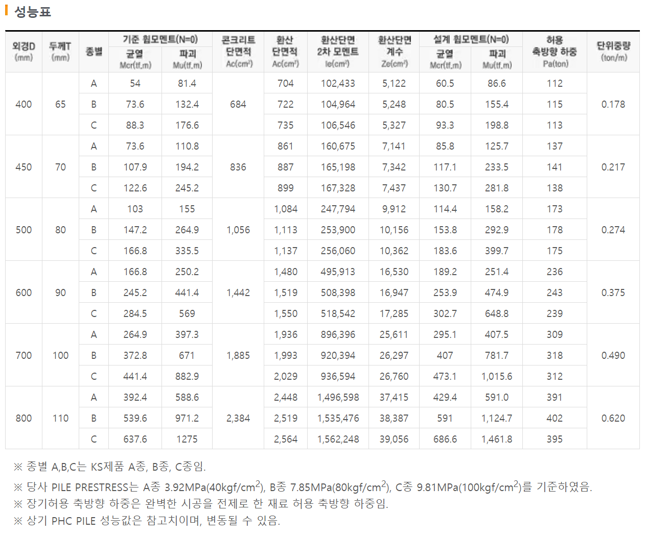 토목 구조물 기초용으로는 400짜리를 많이 쓰고 좀 하중이 많이 받아야 할 경우 500짜리도 좀 쓰는 듯 하다.
