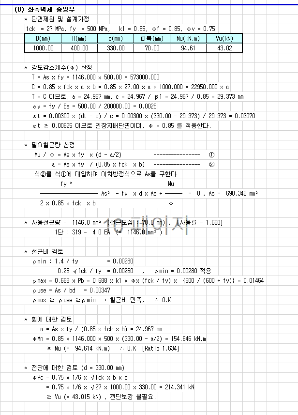by ✯주철근이 많이 들어간 것 같다고 안전율이 높으니 철근을 한 치수 낮추라고 지적하는 사람들이 많으나, 정작 그렇게 줄이면 철근비에서 N.G나는 경우가 많다.