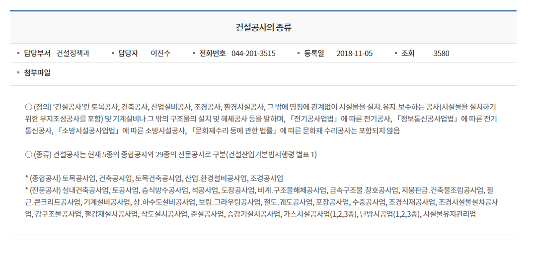 그래서 전문공사 29종 종류를 확인해야 하는 경우가 잦아지고 있어서 올려둔다.