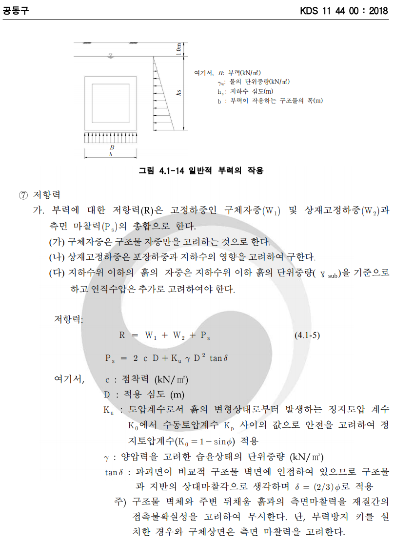 비정형 지하구조물 부력검토관련 기준