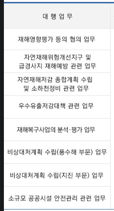 두번째, 세번째 항목의 "및"은 AND로 해석해야 한다. 즉, 두번째 항목을 예를 들면... 급경사지 붕괴방지공사 설계를 했다고 이 업무를 했다고해서 방재실적으로 넣으려고 하면 안된다.