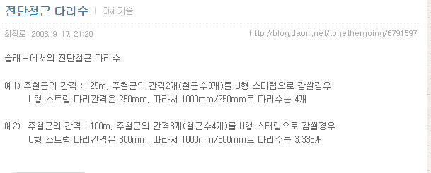 전단철근 다리 수 계산 참고