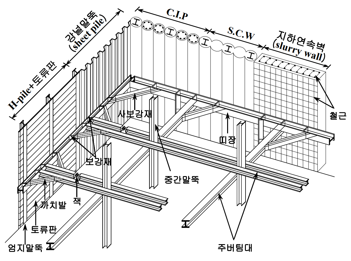 [흙막이 구조물의 사용부재와 흙막이에 관련된 기본적인 용어]