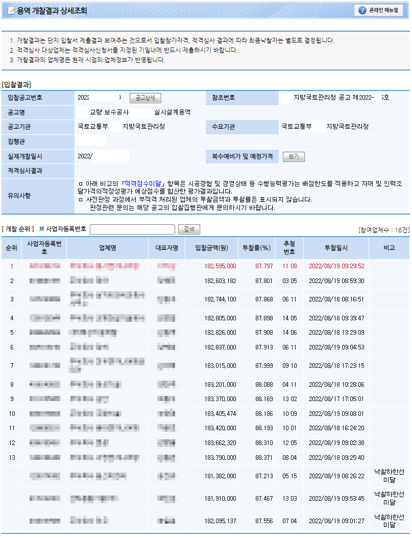 지역제한도 없어서 전국에서 입찰을 들어올 수 있었는데도