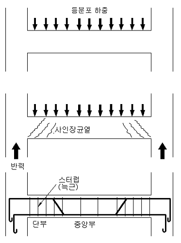 콘크리트는 눌림에 잘 견디지만 벌어짐에는 약하다.