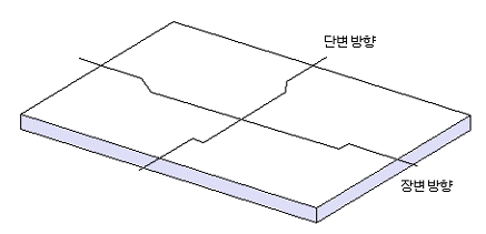 단부를 보면 위로 휘기 때문에 위는 갈라지고 아래는 눌림을 받는다.