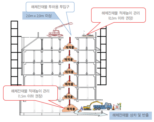 해체잔재물 적재높이 : 0.3m (구조검토자의 판단으로 더 봐줄 수 있음)