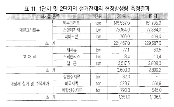 2008년에 작성된 '해체공사의 사례분석을 통한 폐기물 발생량 비교분석' 이라는 논문이다.