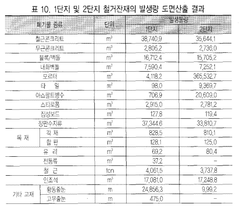 1979년부터 1981년까지 건립된 재건축현장의 105개 동의 철거공사에서 조사된 데이터를 기준으로 작성되었다.