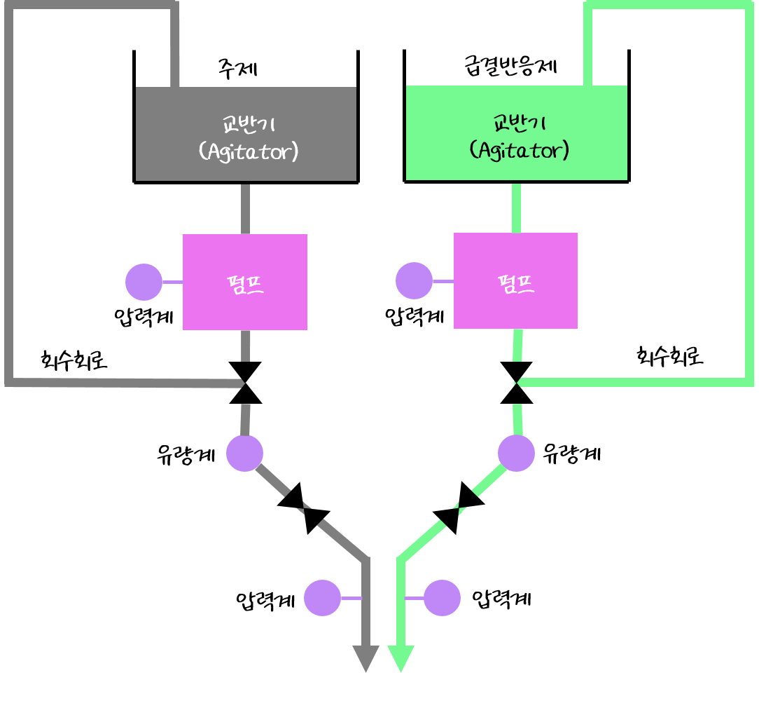 주입방법은 2.0 shot을 표준으로 하는데 개념은 다음과 같습니다.