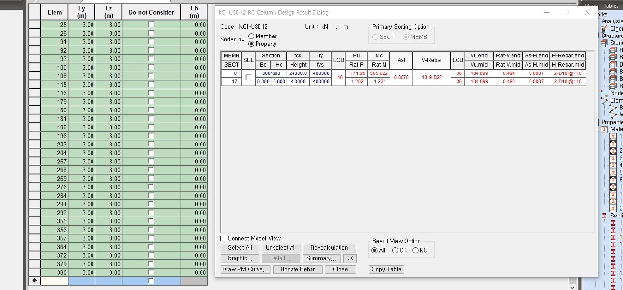 ② 그 부재만 선택한 상태에서 Code Checking을 하면 세장비에서 OK