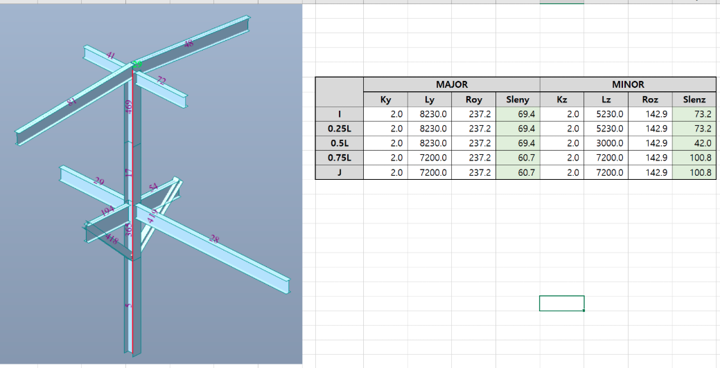 Detail 계산서 출력시 세장비 검토시 사용되는 값으로, Detail 계산서의 Check slenderness ratios of BRACED/UNBRACED frame 항목에서 출력되는 Ly, Lz 값을 확인해보시기 바랍니다.