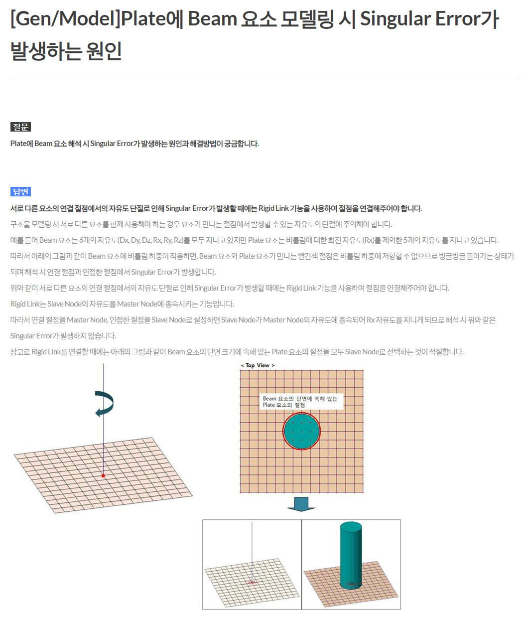 질문 : Plate에 Beam 요소 해석 시 Singular Error가 발생하는 원인과 해결방법이 궁금합니다.