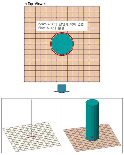 [Midas]Plate요소와 Beam요소를 붙일 때 주의점