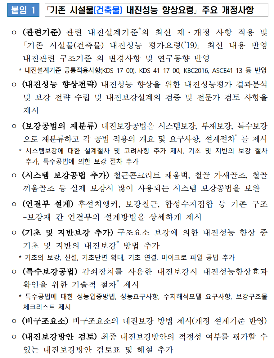 2022년 개정 '기존 시설물 내진성능 향상요령'