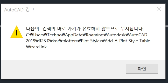 캐드 '다음의 검색의 바로가기가..' 메시지 출현