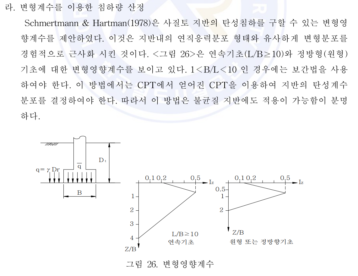 by ✯Schmertmann & Hartman (1978) 침하량 산정법은 구조물기초설계기준에 기재되어 있다.