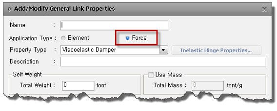 2) 경계조건 : General Link의 Force Type과 Tension only/Compression only Elastic Link는 Elastic Link의 General Type으로 치환하여 해석