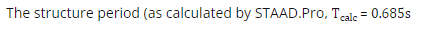 구조물 주기는 구조해석 프로그램에 의해 나와야 하는데 이번 예제에서는 Staad에 의해 0.685(s) 로 주어졌다고 되어 있다.