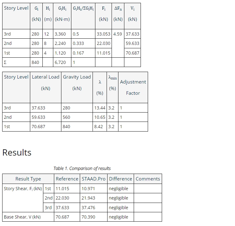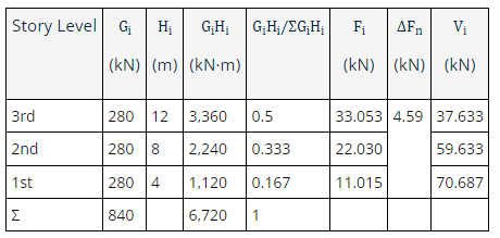 ΔFn은 건물 최상층에서의 추가지진응답이다. 즉, 아래 표에서 ΔFn 값이 최상층인 3rd에만 있는 이유이다.