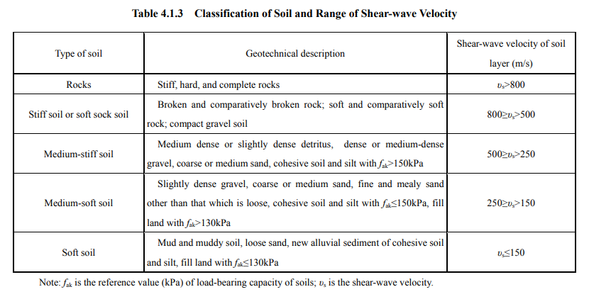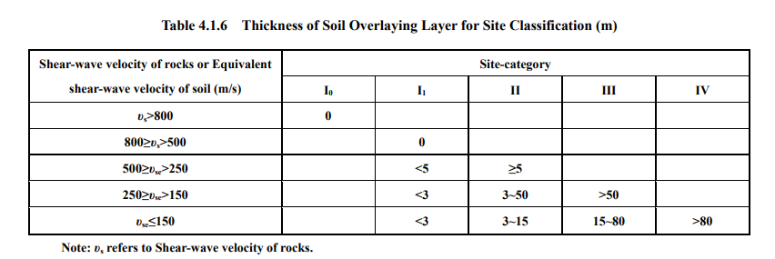 지반에 따른 Site Classification은 아래와 같은데 지반이 안좋고 기반암 심도가 10m 정도라면 Site Category가 2가 된다.