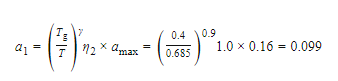 Tcalc = 0.685 s 이므로 위의 그래프에서 Tg~5Tg 구간에 걸리므로 아래 식으로 a1 값을 구하게 되었다.