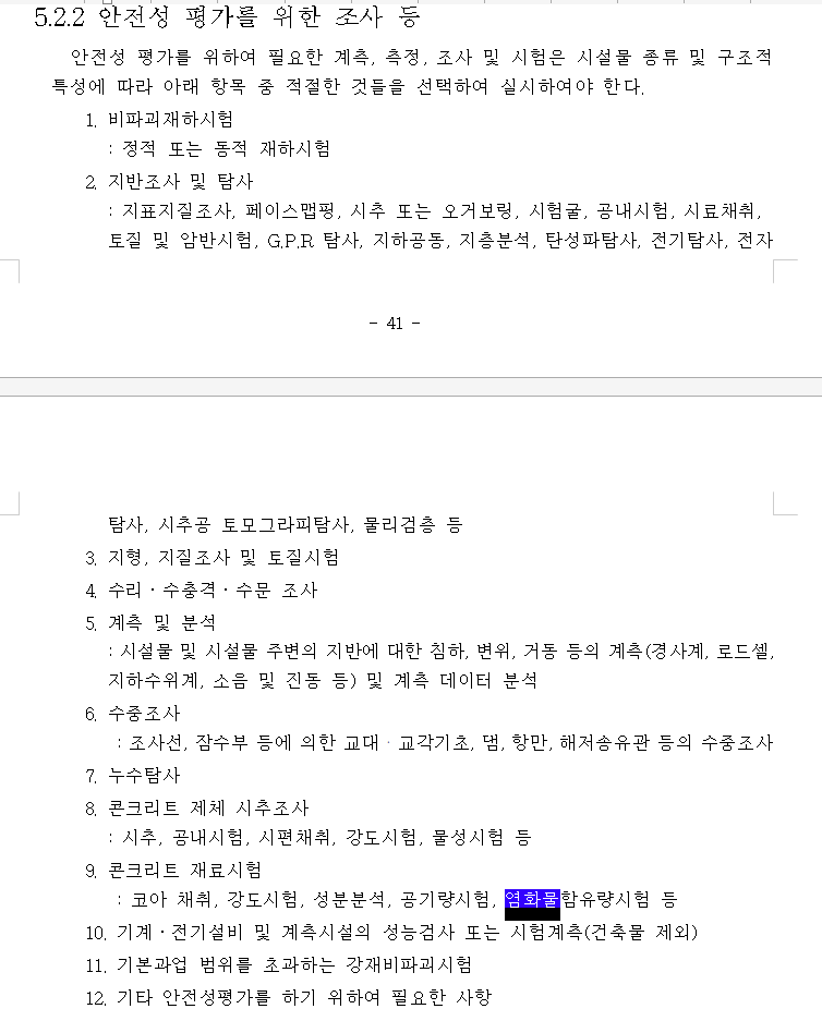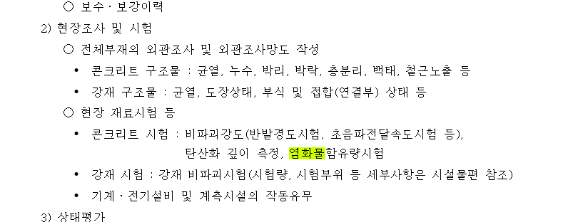 정밀안전진단/점검 용역에서 염화물시험을 하도급으로 내보내고 발주처에 하도급통보를 해야 한다.