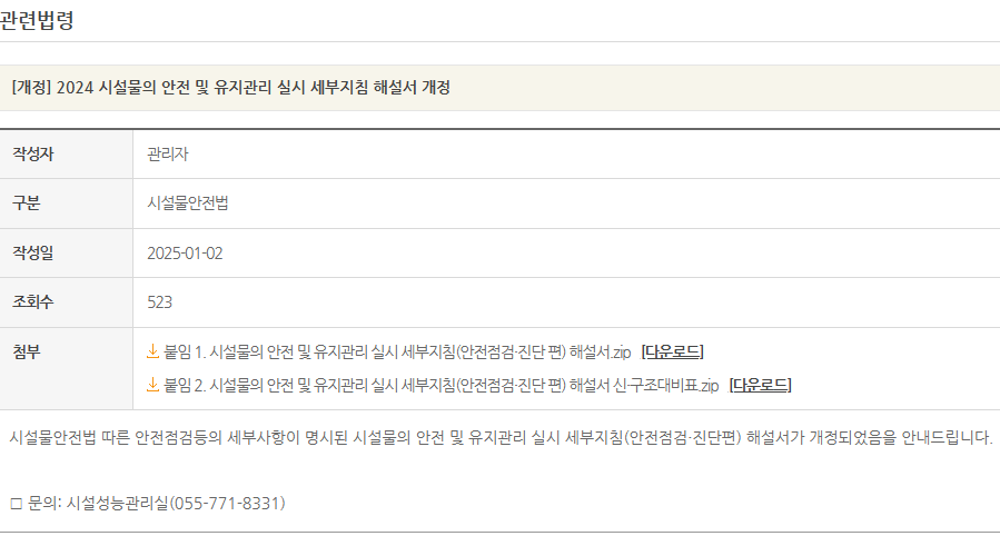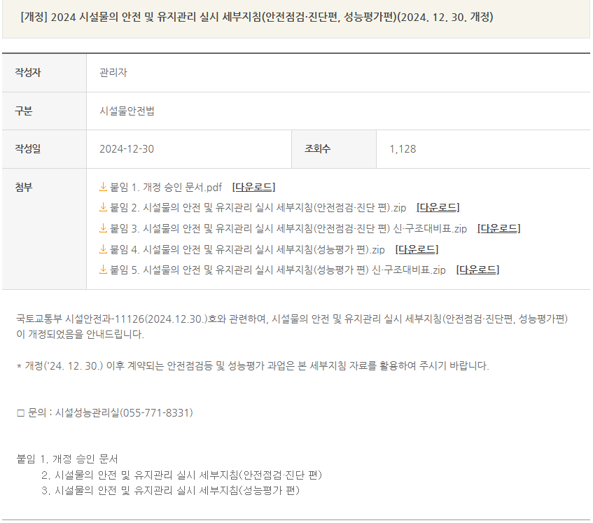 by ✯『시설물의 안전 및 유지관리 실시 세부지침 및 해설서』가 2024.12.버전으로 개정되어 등록되었다.