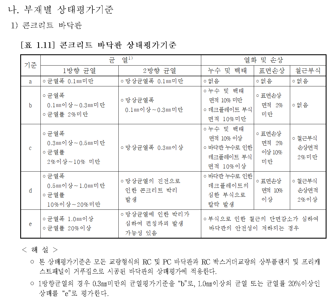 그 중 하나가 교량의 바닥판 상태평가기준이다.