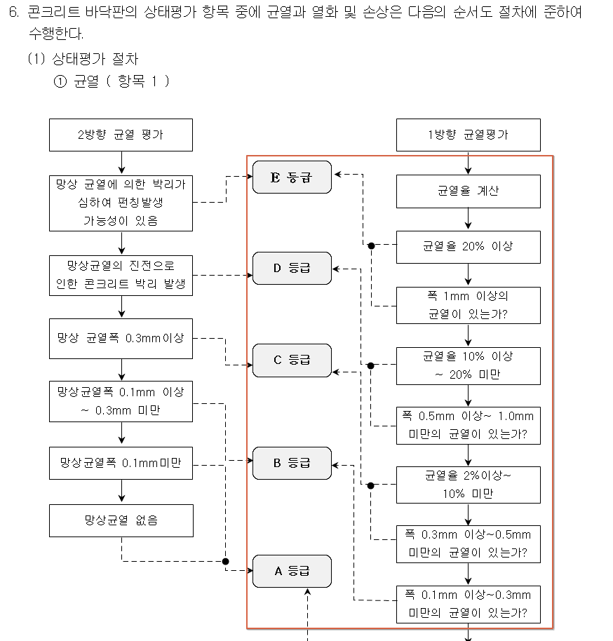 균열률이 20% 이상이 아닐경우 폭 1mm 이상의 균열이 (조금이라도) 있으면 E등급으로 간다.