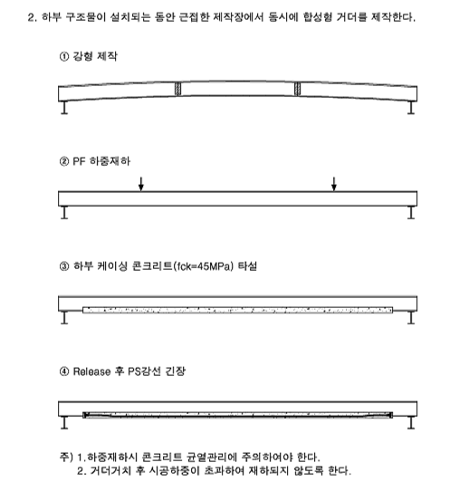 하부플랜지에 PS강재를 긴장하여 시공을 해놓는 것까지는 좋다.