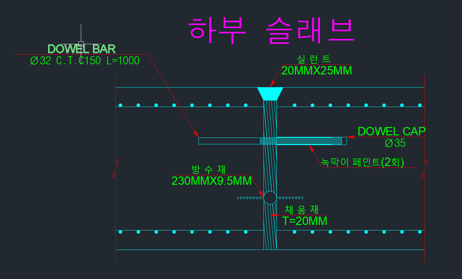 그리고 위에서 말한 "탄성봉함재가 포함된 교량신축이음장치"는 모양이 일반적인 교량 신축이음장치처럼 생겼는데 그 외에도 일체식, 무조인트 형식에도 탄성봉함재가 들어갈 수 있다. 아래 도면은 예전 도로공사 교량 설계 때 내가 적용한 것이다.