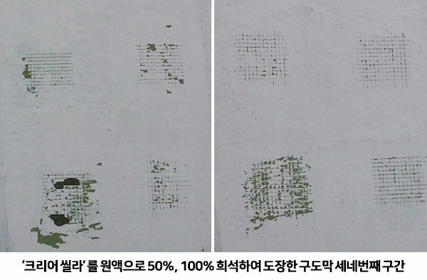 ‘크리어 씰라’와 ‘수성 외부용’ 제품으로 재연실험을 통해