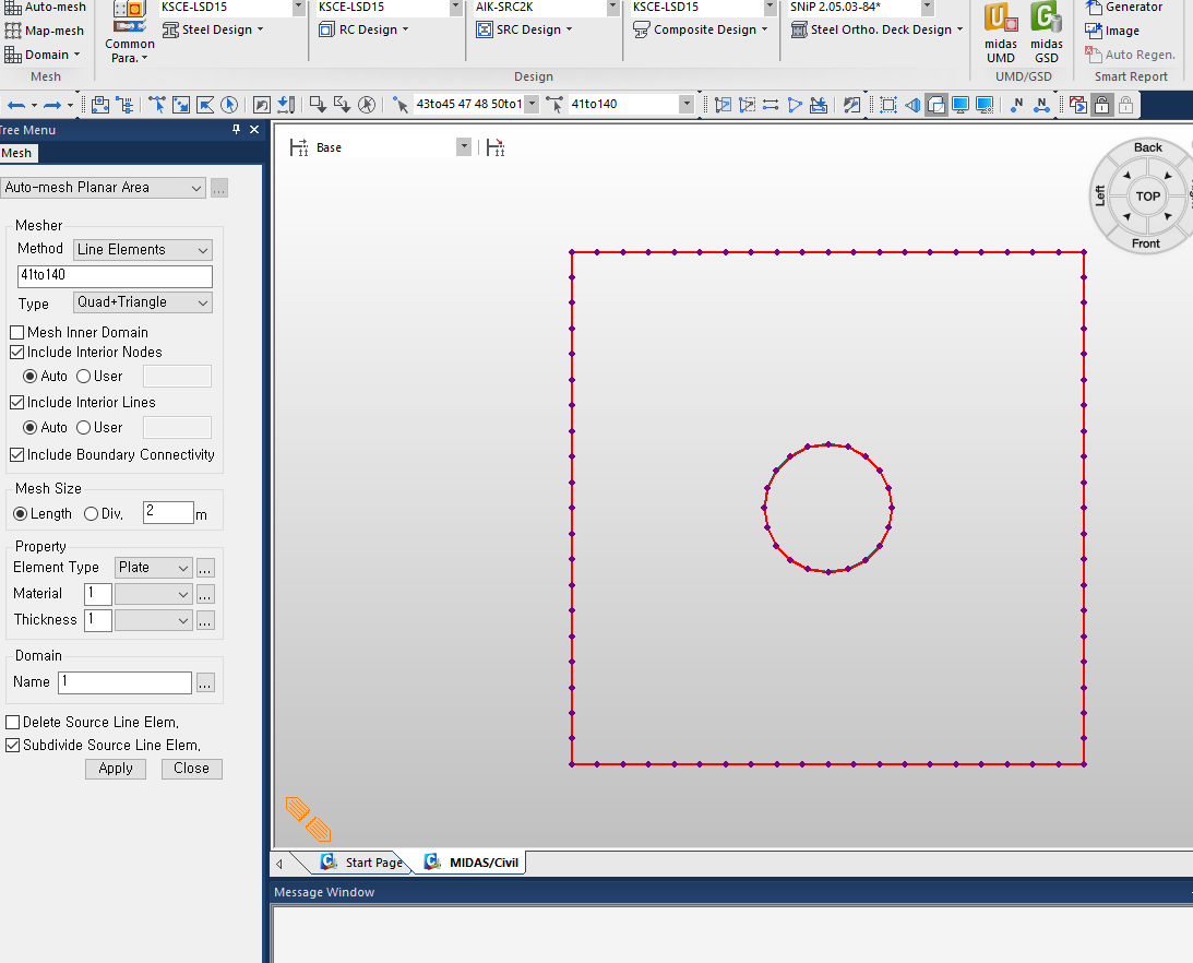 Midas 원형구멍 메쉬 만들기