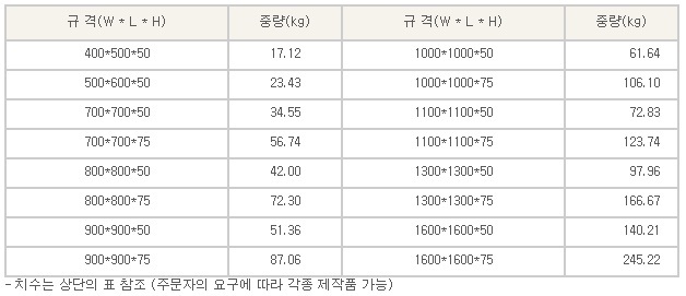50mm 기준으로 대략 60~70 kg/m2 정도 잡으면 될 듯 하다.